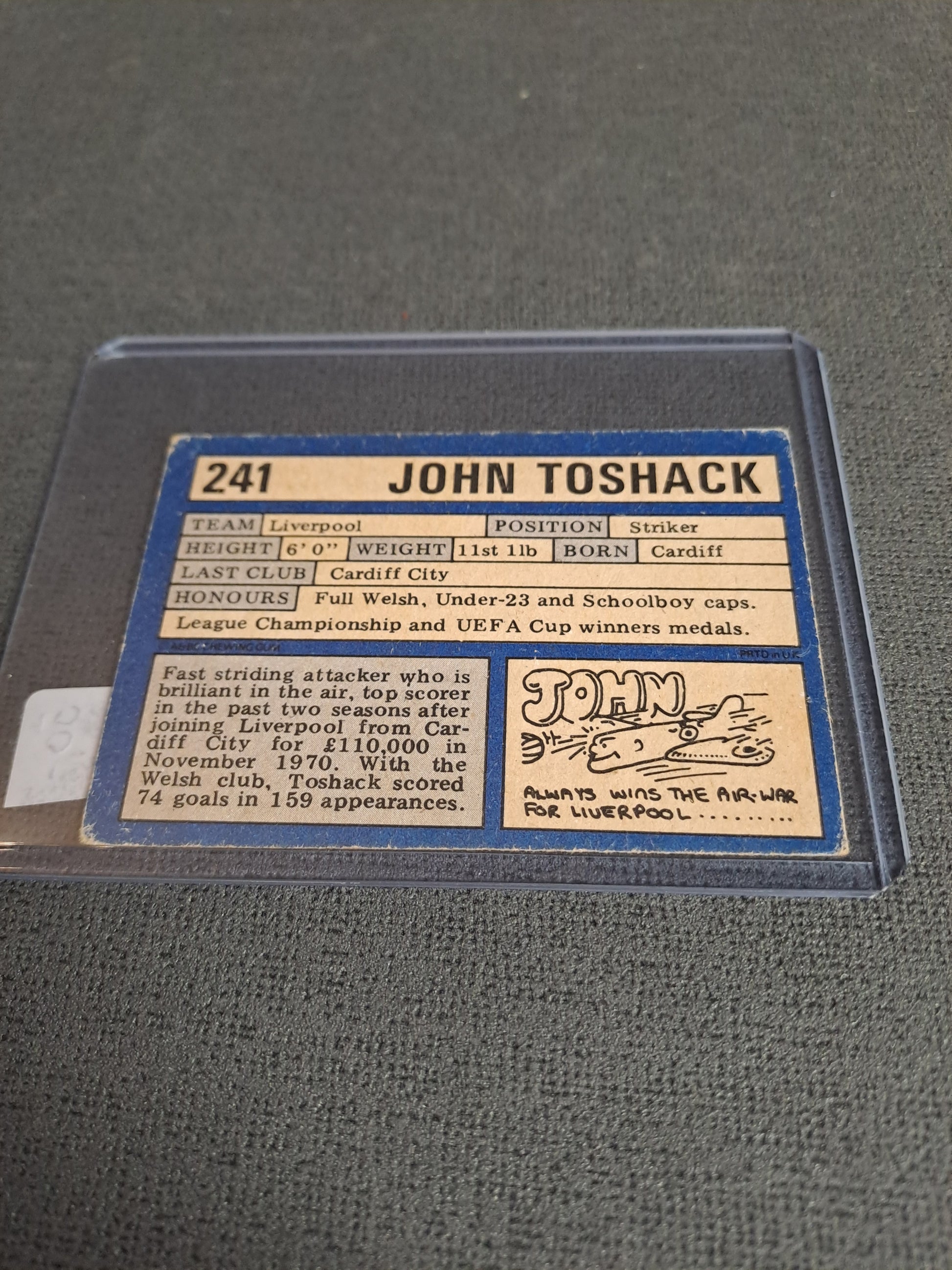 John Toshack. Liverpool. Corner marks. Comes in pvc toploader.