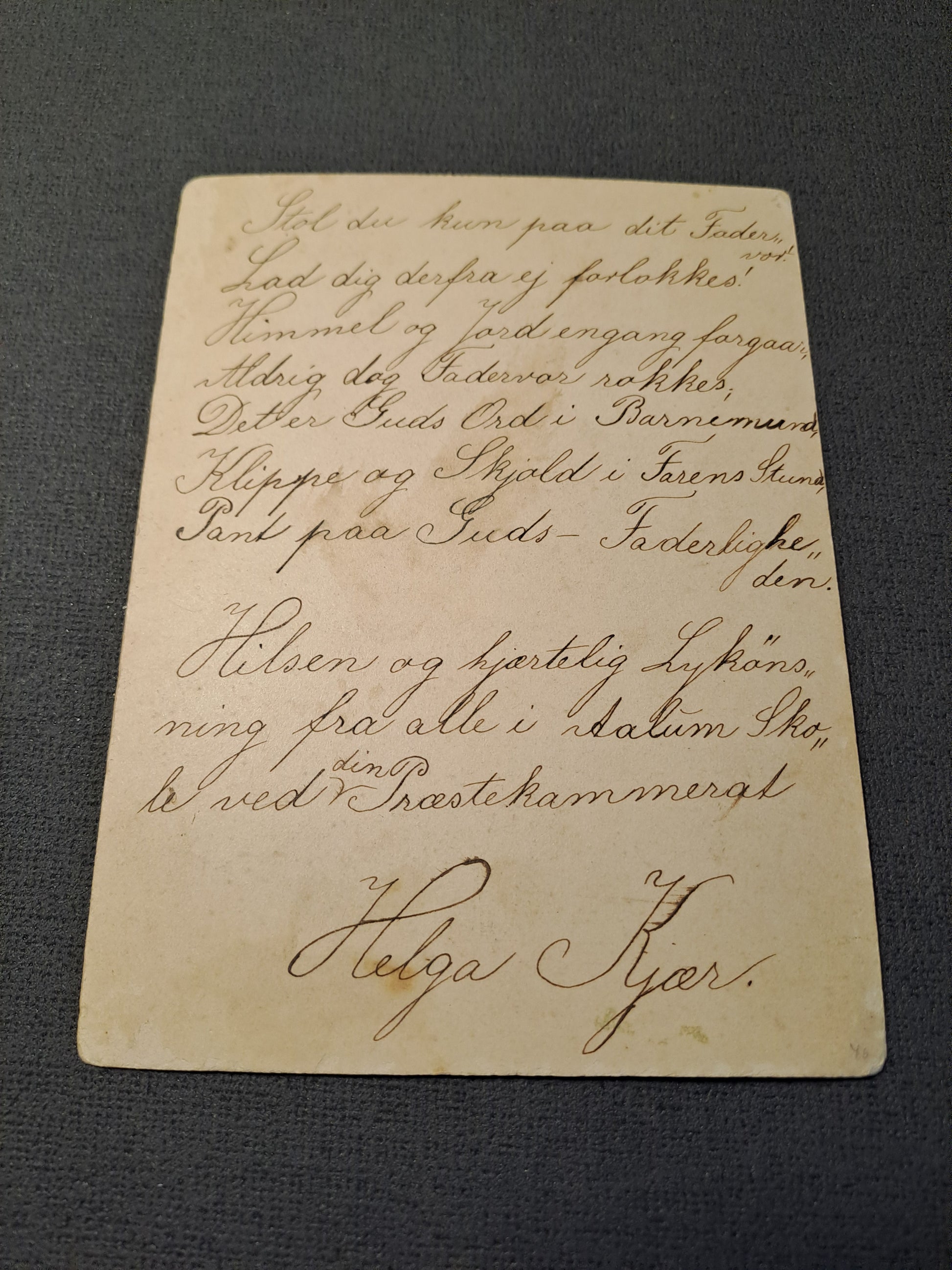 Med håndskrevet vers.