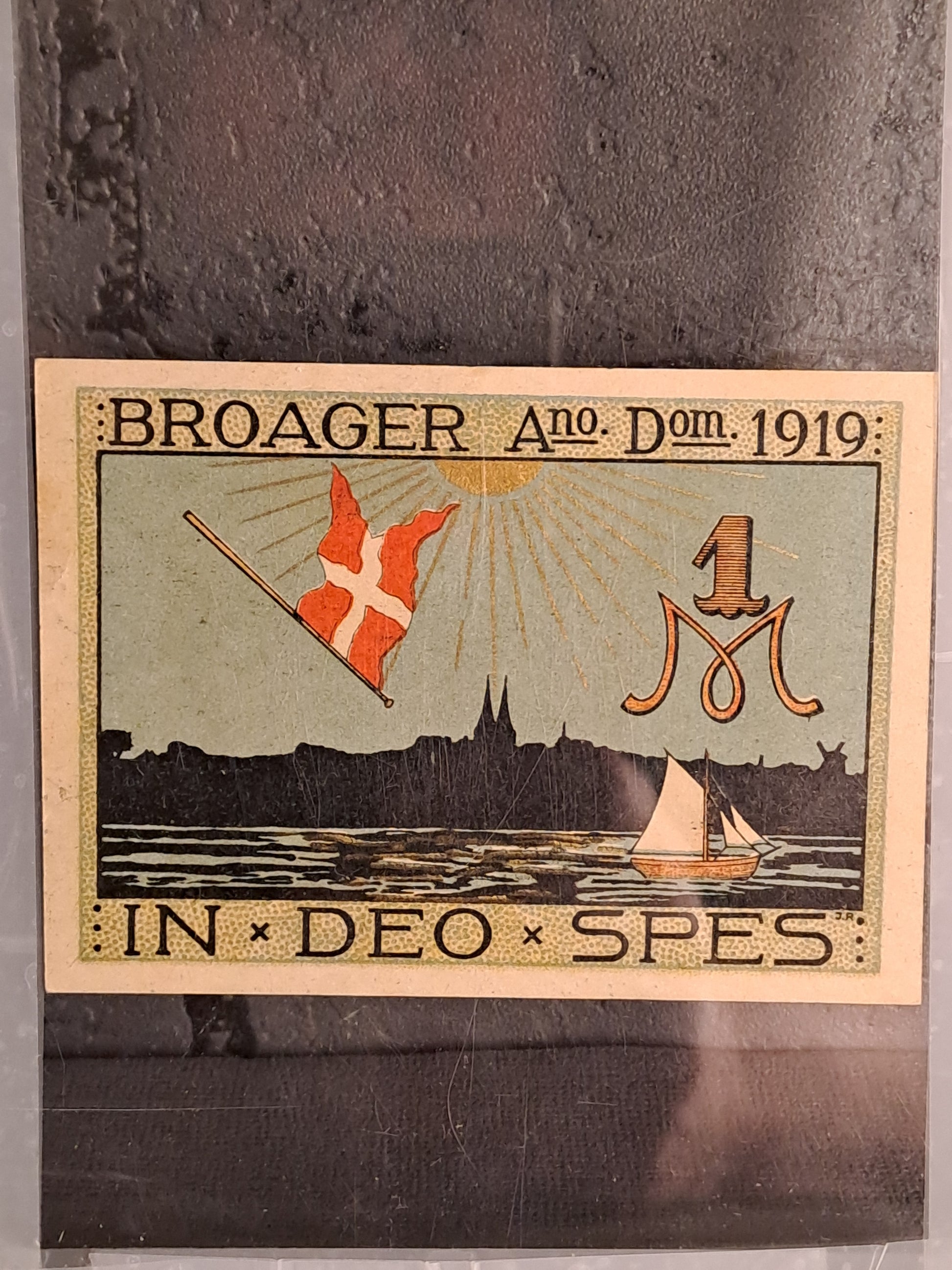 Mounted between 2 plexi glass. After WW1 there were lack of official valuta in Germany. The communes were aliwed to print their own bills. In the german border region Schleswig they were also used as propaganda toward the election regarding german or danish nationality.