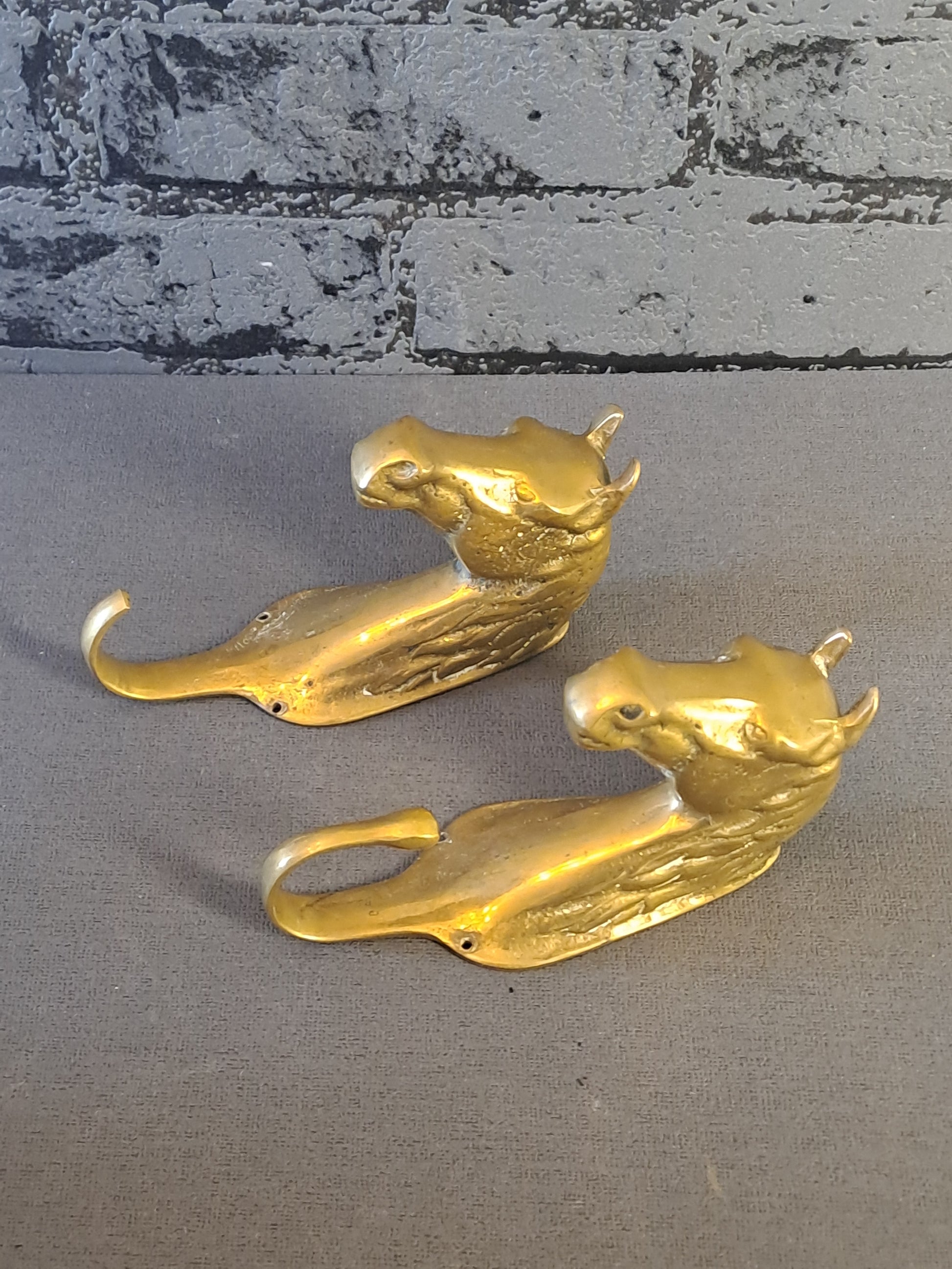 Brass horses. One is missing a bit of the hanger. H: 14 cm. Weight 750 g.