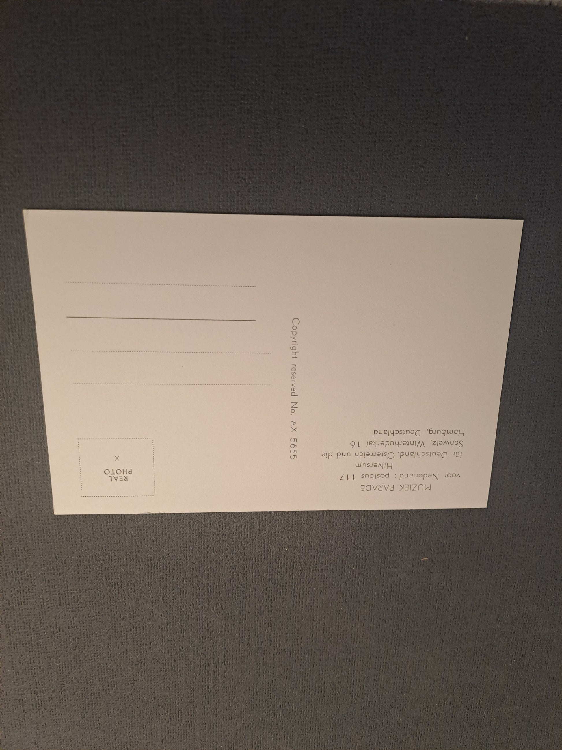 Sjældent hollandsk postkort i en rigtig god stand. Blank fotopostkort fra "Muziek Parade". Str. 13,8x9,2 cm.